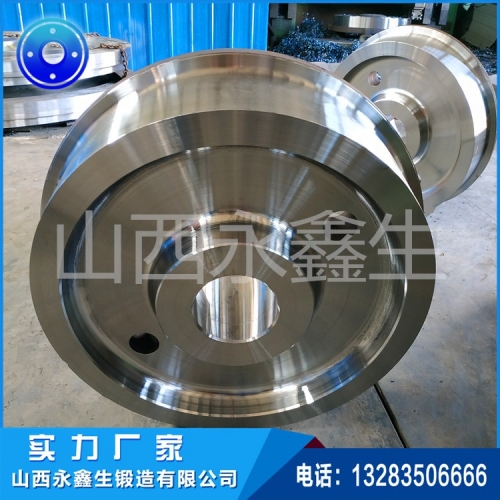 【产品名称】:锻钢车轮【产品规格】:来图定制【执行标准】:国标、行业标准、非标等【产品特点】:整体锻造、选用优质原材料、30年生产经验。【质量承诺】:如有锻件质量问题,经过检验确实属于行车轮的问题,我们来解决。【产品优势】:交付及时、价格公正、工序同步追溯可控!【质量保证】:我们公司有起重机车轮质量检验认证,所有产品都是经过严格探伤,保证每件锻件合格出厂,出厂材料提供质保书及探伤报告。【公司介绍】
