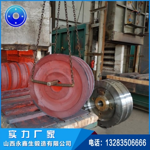 【产品名称】:锻造铁水包运输车从动轮【产品规格】:来图定制【执行标准】:国标、行业标准、非标等【产品特点】:整体锻造、选用优质原材料、30年生产经验。【质量承诺】:如有锻件质量问题,经过检验确实属于车轮锻件的问题,我们来解决。【产品优势】:交付及时、价格公正、工序同步追溯可控!【质量保证】:我们公司有锻件质量检验认证,所有产品都是经过严格探伤,保证每件锻件合格出厂,出厂材料提供质保书及探伤报告。【