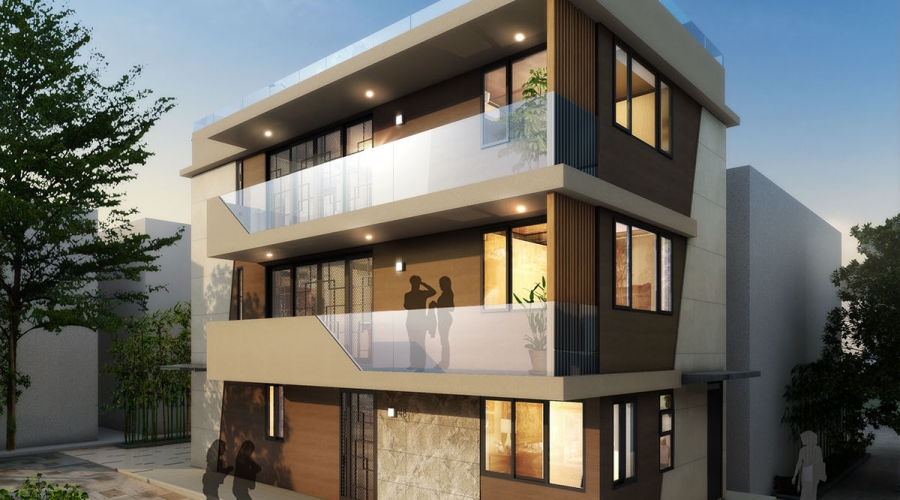 A Che village love Chinese style also love modern minimalist style, so APU uses a variety of different materials and oblique lines unique design the very modern style village house. Exterior wall design, APU selected wood, color, beige and black brick as the main external wall, part of the use of paint and cultural stone as an emphasis. The areas of different color bricks are segmented by a dynamic diagonal strip. The cement, semi height, fence and glass fence of the terrace also extend the line, cleverly separating the half opened private space and the open space. On the side of the terrace, a wooden fence screen is made of outdoor wood, which adds to the features of the two and third floors.